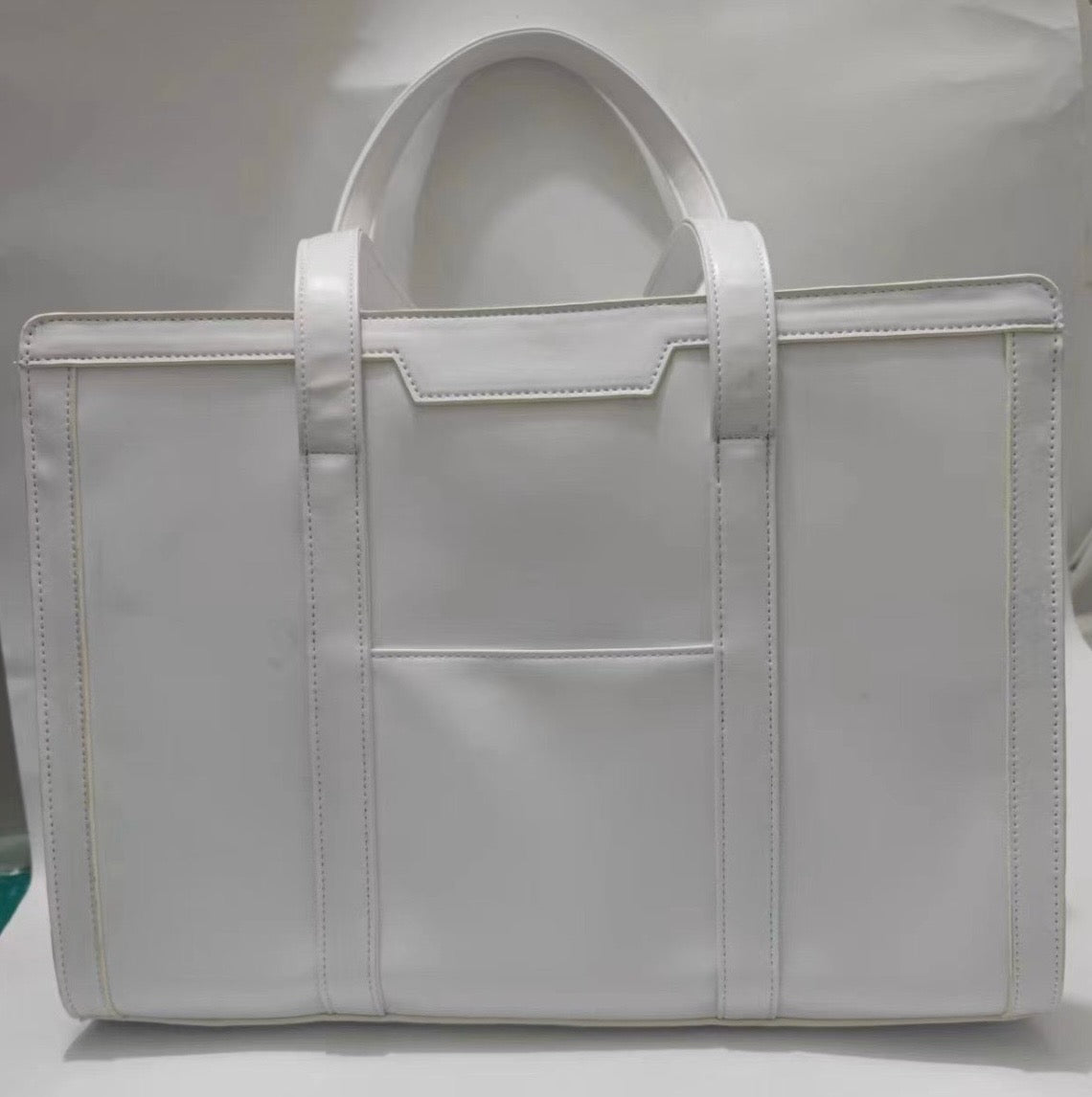 This set includes a wristlet and large purse. Your purse has pockets that will support a small laptop, iPads, tablets, tumblers notebooks and much more. This purse is all whites inside and out.
