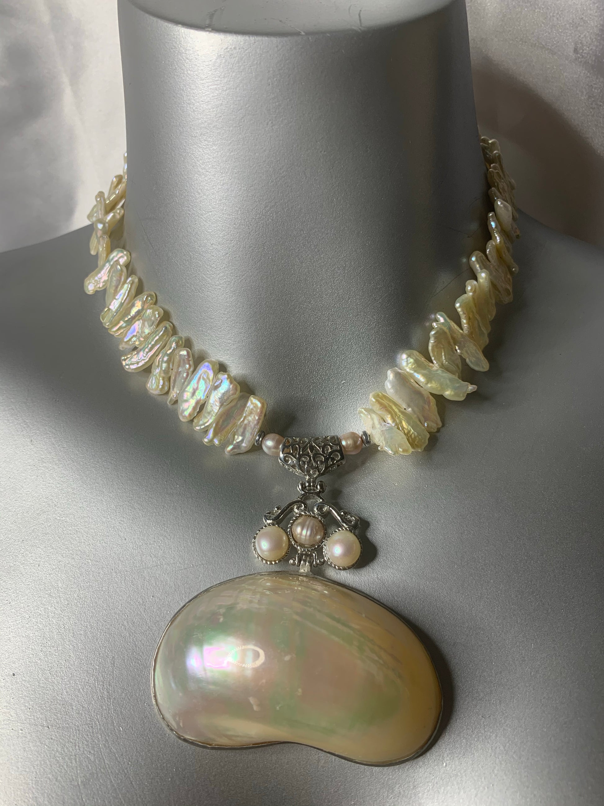 . Freshwater pearls with bold accent. 18 in. With matching earrings. Freshwater pearls with bold accent. 18 cm in.². With matching earrings