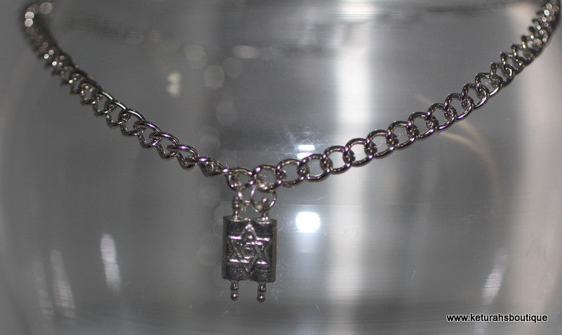 Silver tone frontlet with pewter Star of David Scrolls pendent