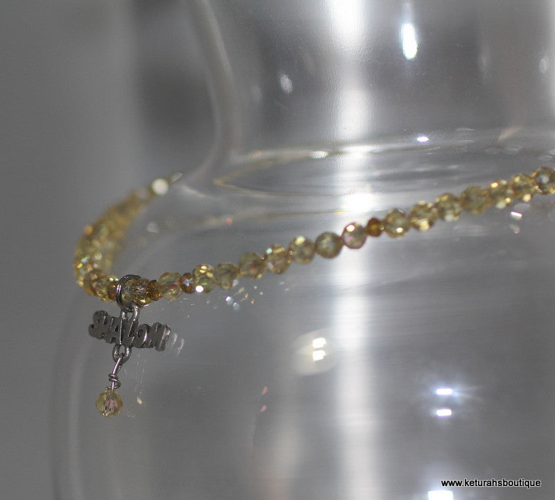 Maze crystal frontlet accented with a pewter shalom pendent.